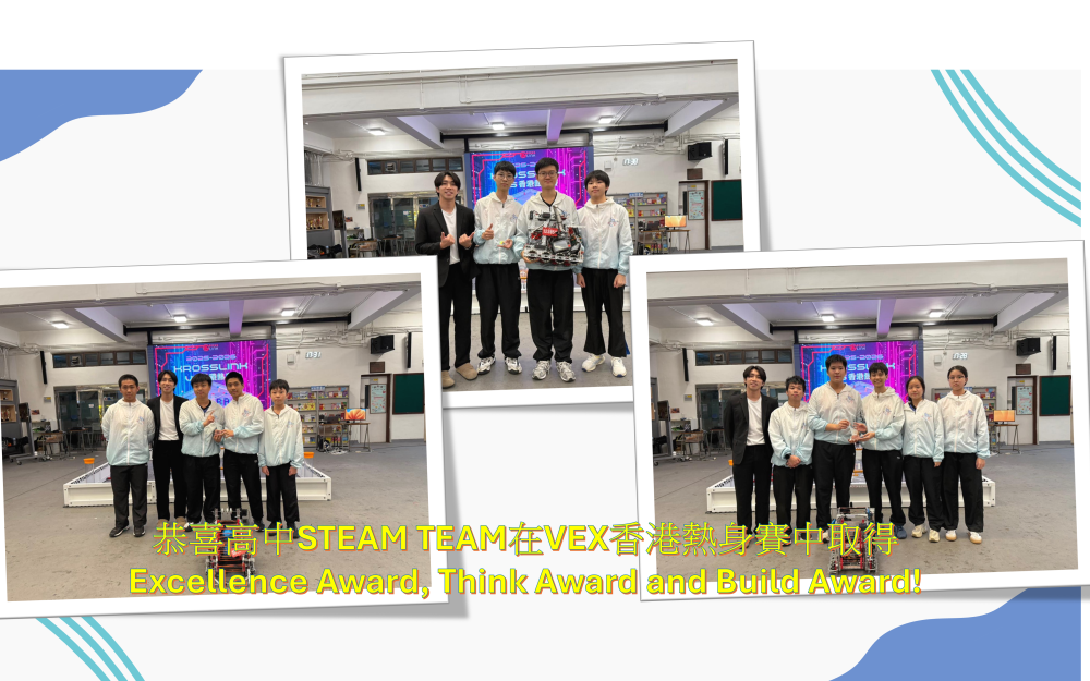 恭喜高中STEAM TEAM在VEX香港熱身賽中取得Excellence Award, Think Award and Build Award!